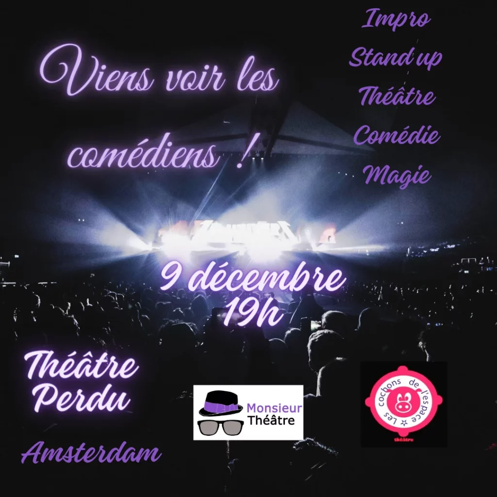 Le soir à 19h, au Perdu d’Amsterdam, une soirée exceptionnelle se profile ! Improvisation, comédie, magie, stand-up, poésie et une touche de dramatique vous attendent avec la compagnie MonsieurThéâtre.nl. Une expérience festive à ne pas manquer avant les fêtes de Noël !